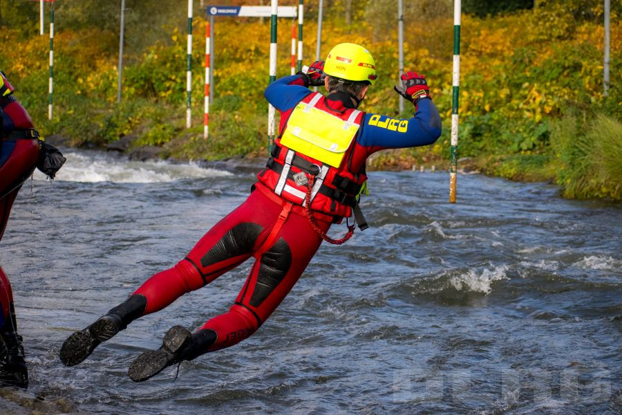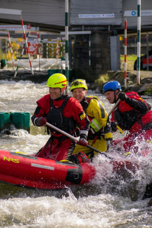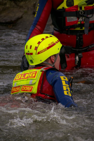 Bei teils anspruchsvollen Strömungsverhältnissen trainierten die Teilnehmenden unter realistischen Bedingungen verschiedene Rettungstechniken im Wildwasser. Dazu gehörten das Wurfsackwerfen, die Springerrettung, das Schwimmen im Wildwasser, der Umgang mit dem Rettungssled sowie eine Übung zur Patientenrettung.